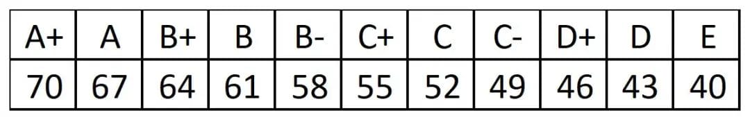●文化职业测试使用中等职业学校学生学业水平考试语文、数学、英语3门科目等级进行折算。每门科目的等级以市教育考试院组织的考试成绩为准。其中,A+为满分70分,E计40分,相邻两级之间的分差均为3分。