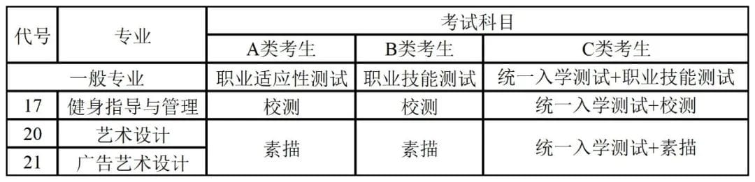 统一命题科目为《统一入学测试》、《职业适应性测试》、《素质技能测试》,其中《统一入学测试》成绩满分150分,《职业适应性测试》成绩满分为300分(包含文化基础150分、职业与心智90分、专业通识基础60分),《职业技能测试》为素质技能测试(统一命题),成绩满分200分。